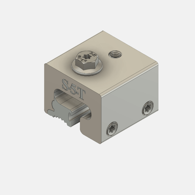 The S-5-T is specifically designed for profiles featuring a “T”-shaped seam configuration. Easily install the two-piece design anywhere along the seam.